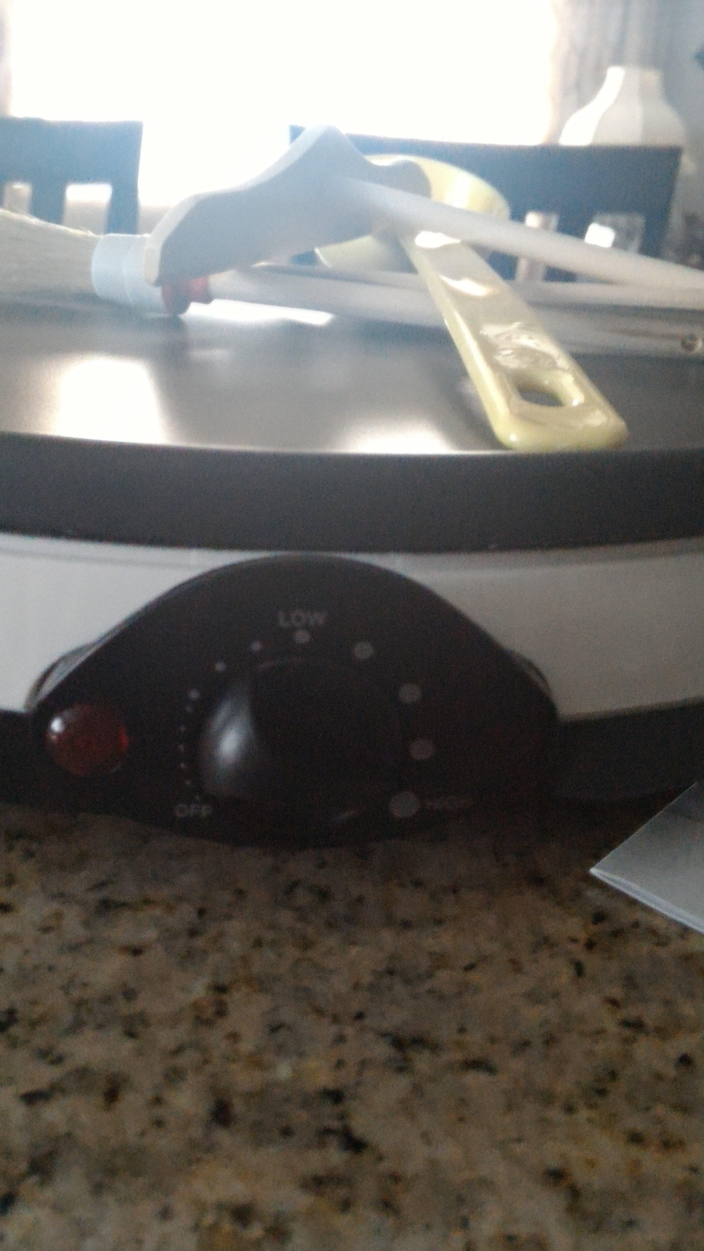 - Powerful adjustable electric heating element – the heating element is very powerful as 1200W and works great for pancakes and crepes. The heating element is fully electric and is adjustable with the knob in the picture from low to high. The heating element made perfect crepes and pancakes for me! There is an indicator light which shows when its heating up, and when its ready for use!